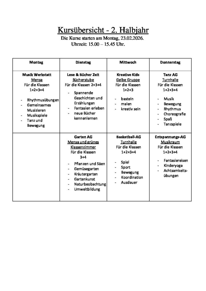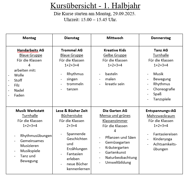 Unsere OGATA bietet eine Vielzahl an flexiblen, offenen Angeboten für alle Jahrgänge. Diese Programme sind darauf ausgelegt, den unterschiedlichen Interessen und Bedürfnissen unserer Schüler gerecht zu werden. Von kreativen Workshops über sportliche Aktivitäten bis hin zu Lernunterstützung – bei uns findet jeder etwas Passendes. Unsere Angebote sind so gestaltet, dass sie jederzeit und ohne Voranmeldung genutzt werden können, um maximale Flexibilität zu gewährleisten.