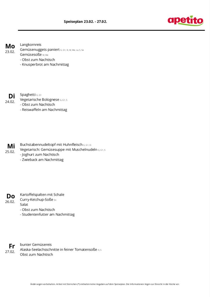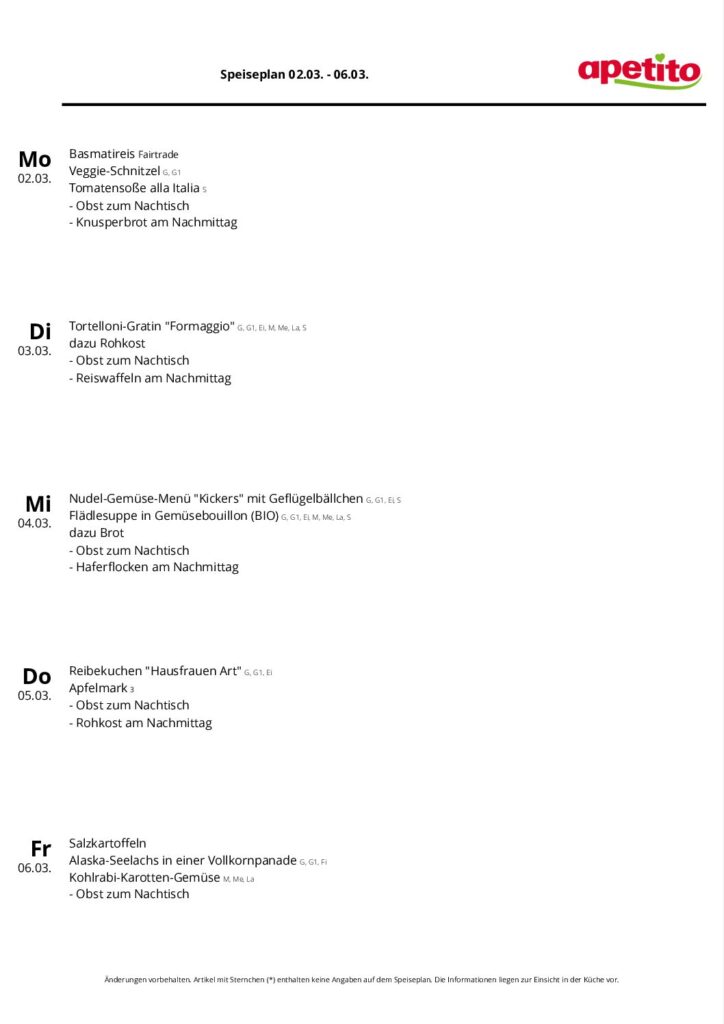 Legende zum Speiseplan